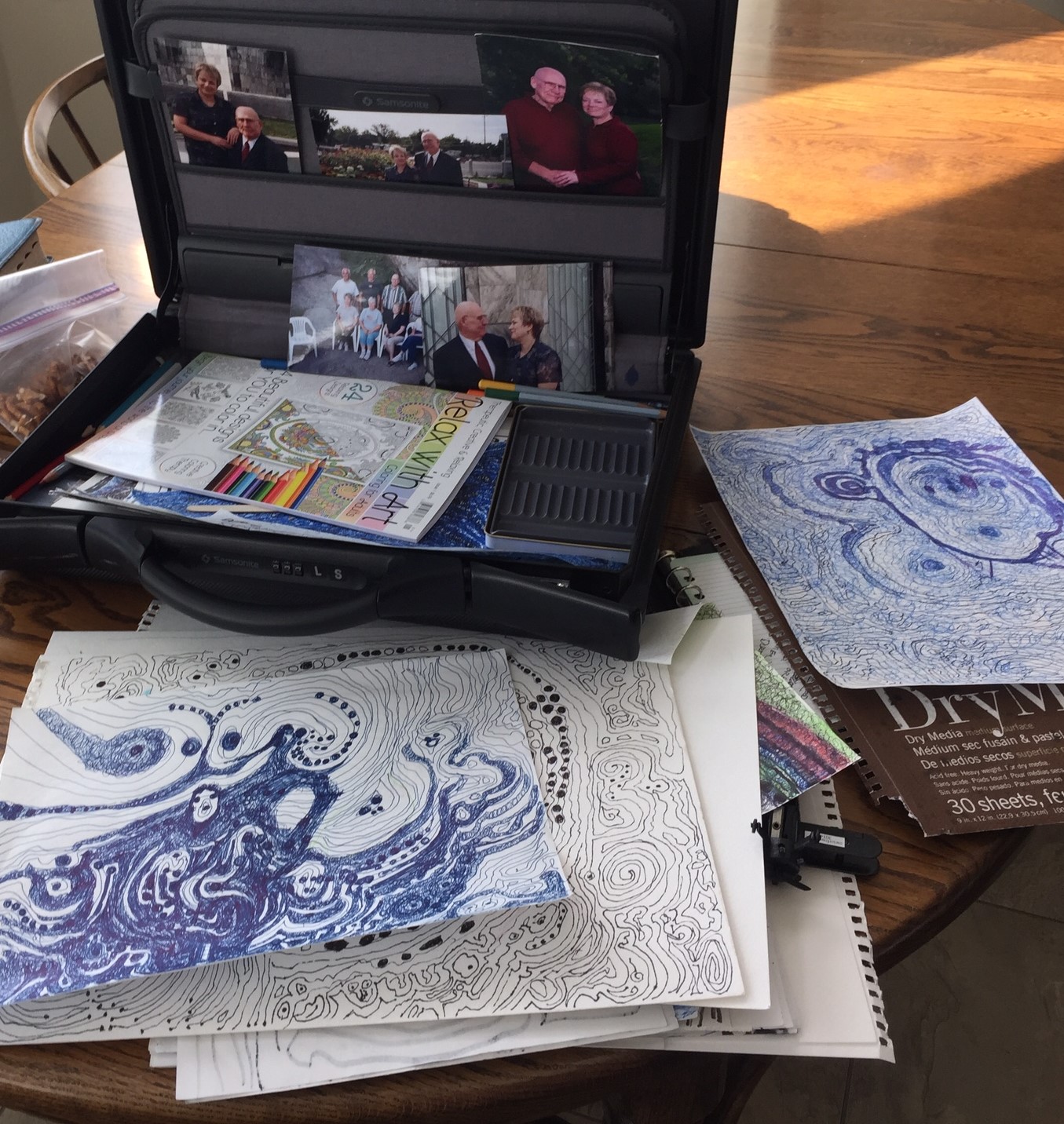 During the last 18 months of LaVar Steel’s life, he was drawing while accompanying his wife Marian to work, meetings, and other activities. It was an unplanned project intended to keep LaVar busy. Inadvertently, a briefcase filled with art supplies provided him with the means of creating a firsthand account of a disease that typically robs its victims of their ability to communicate.